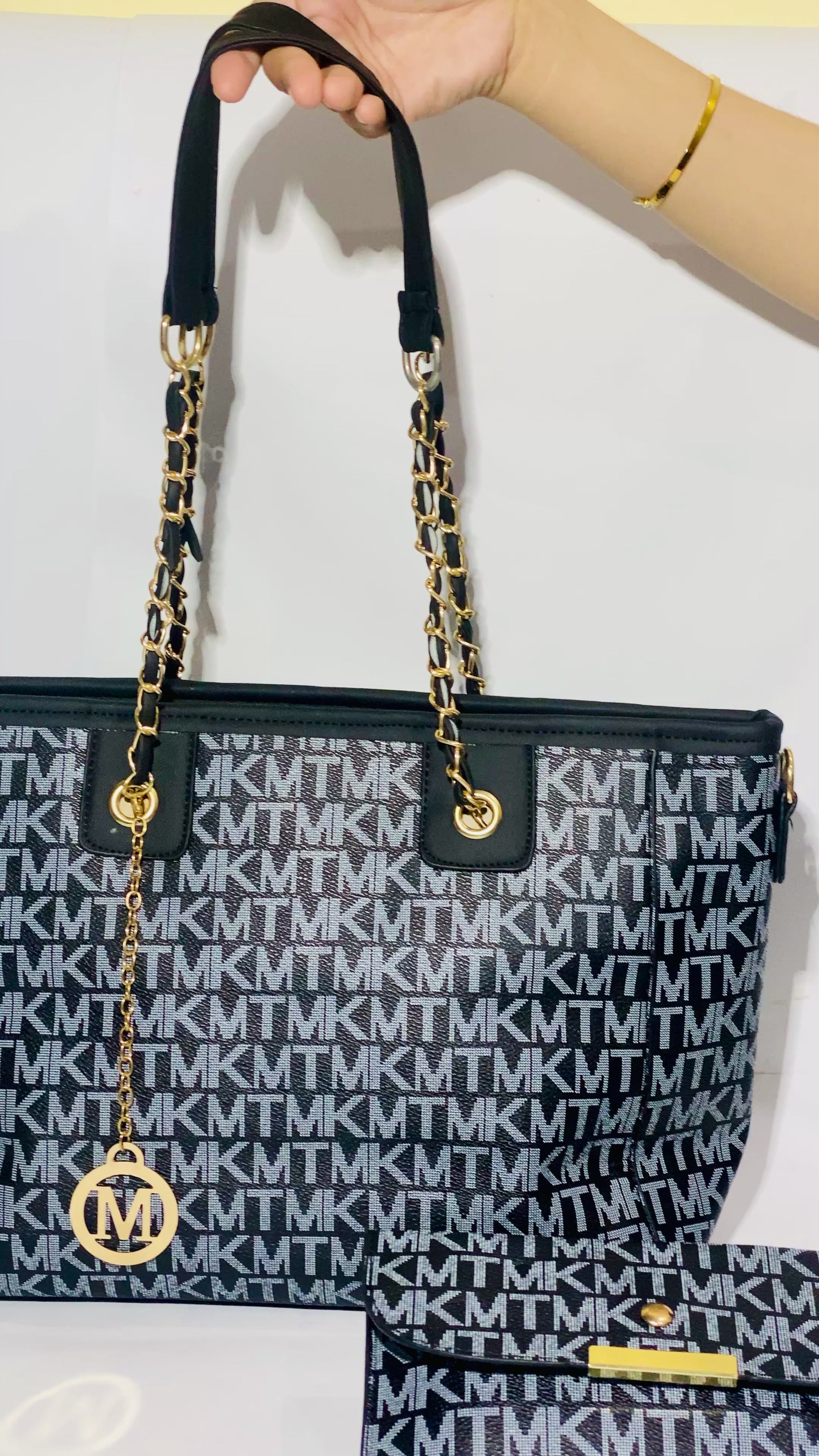 Upgrade your style with this bold MK-inspired handbag featuring a premium finish, gold-tone chain accents, and a matching wallet. Spacious, elegant, and practical — perfect for work, travel, or everyday outings.